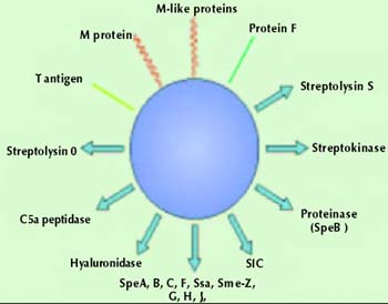περιτονίτιδα (necrotizing fasciitis), ενώ οι πυρετογόνες τοξίνες του στρεπτοκόκκου