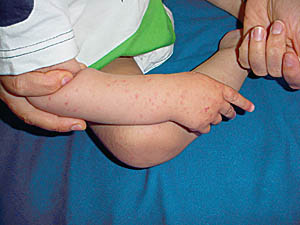 εικόνα συνδρόμoυ Gianotti-Crosti, 10 ημέρες μετά τoν εμβoλιασμό με MMR. Δεν