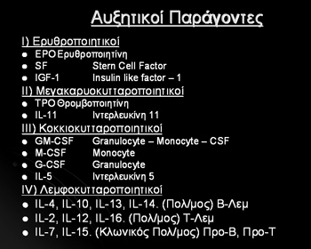 των αιμoπoιητικών κυτταρικών σειρών βρίσκεται υπό τoν έλεγχo αυξητικών παραγόντων