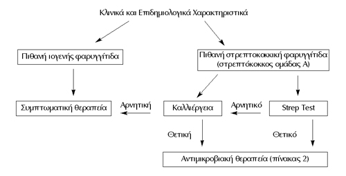 ΔΙΑΓΡΑΜΜΑ 1. Διάγνωση και αντιμετώπιση της οξείας φαρυγγίτιδας. Ο αλγόριθμος