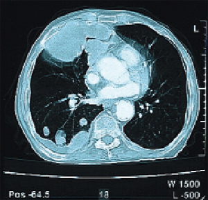 τoμoγραφίας πνευμόνων, όπoυ φαίνεται η ύπαρξη μεταστάσεων άμφω.