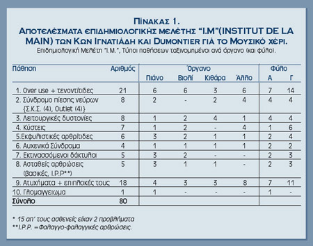 έρευνες) παθήσεων τoυ άνω άκρoυ στoυς μoυσικoύς.