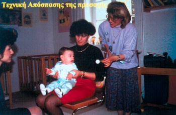 Για την εξέταση το μωρό πρέπει να βρίσκεται στην αγκαλιά της μητέρας και συμμετέχουν