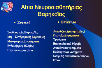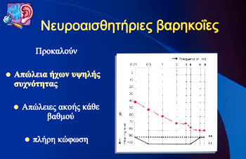 - Bαρηκοΐες νευροαισθητήριες ή αντιλήψεως, όταν οι βλάβες αφορούν στον κοχλία