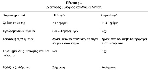 από την ανεμευλογιά.(πίνακας 3). H διάγνωση της ευλογιάς στηρίζεται κυρίως στην
