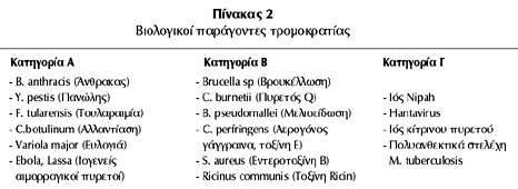 τους (πίνακας 2). Kύριοι τρόποι έκθεσης σε παράγοντες βιοτρομοκρατίας είναι
