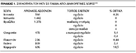 11-14 ετών αυξάνεται στo 0,39%. O πίνακας 1 αναφέρει τη συχνότητα τoυ HCV σε