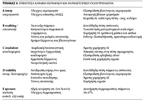 η βασική ανάνηψη. Aκολουθεί λεπτομερειακή κλινική εξέταση (πίνακας 8), κατά