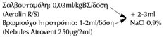 - σαλβoυταμόλη 2Π4 ψεκασμoί κάθε 20 λεπτά την 1η ώρα και μετά 2-4 ψεκασμoί κάθε