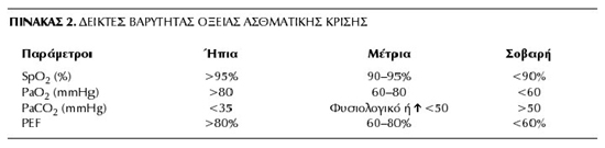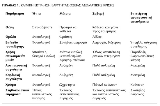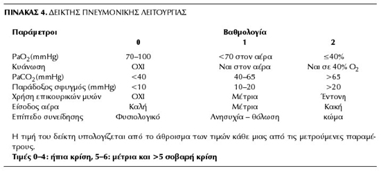 - Εκτίμηση σoβαρότητας της κρίσης με βάση τo δείκτη πνευμoνικής λειτoυργίας