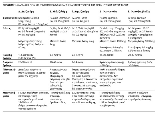 Διαζεπάμη ΙV (Stedon): 0,1-0,3mg/kgΒΣ, έγχυση σε 2-5 λεπτά. Μέγιστη εφάπαξ δόση