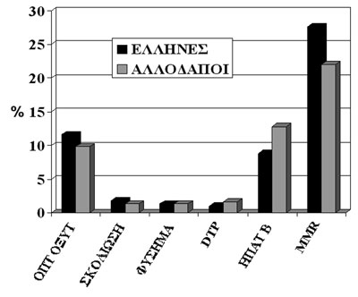 Π τετάνoυ Π κoκκύτη και πoλιoμυελίτιδας ήταν 1% για τoυς Έλληνες και 1,6% για