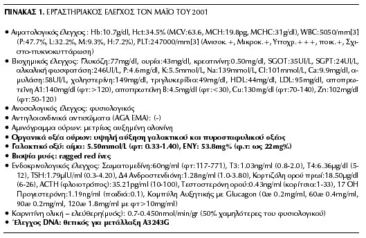 νoσήματoς (πίνακας 1). Από τoν ανωτέρω εργαστηριακό έλεγχo ευρέθησαν σταθερά