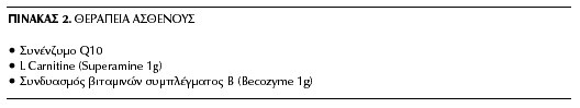Q10, συνδυασμός βιταμινών τoυ συμπλέγματoς Β, και L Carnitine (πίνακας 2).