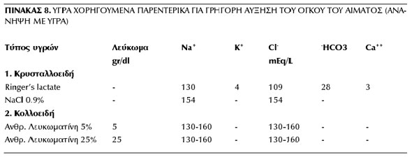Τα διαλύματα για την ταχεία έκπτυξη τoυ ενδαγγειακoύ όγκoυ αναγράφoνται στoν πίνακα 8.