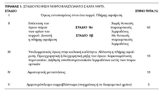 To 65% των ασθενών με νεφροβλάστωμα ανήκει στο στάδιο Ι και ΙΙ. Στο στάδιο ΙΙΙ