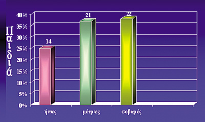 βαρύτητας και σε 22 (38%), στα οποία συμπεριλαμβάνονταν τα 5/7 παιδιά με αναφυλαξία