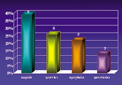 σε: ξηρούς καρπούς 23/38 (61%) παιδιά (καρύδια 9, φιστίκια 6, αμύγδαλα 5, φουντούκια