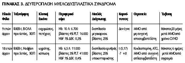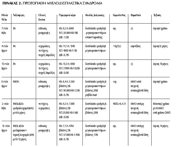 μυελού των οστών (ΜΜΟ). Να σημειωθεί ότι 2/6 παιδιά με πρωτοπαθές ΜΔΣ εμφάνισαν