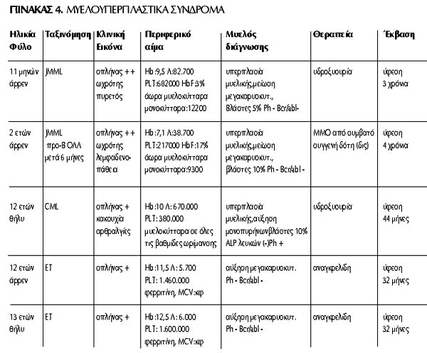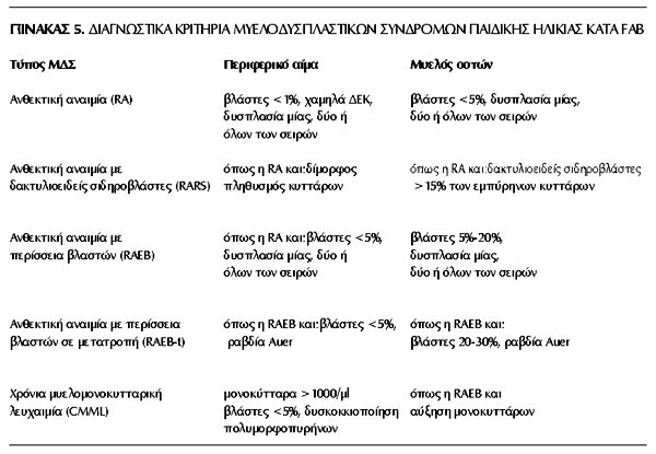 Λέξεις ευρετηριασμού: μυελοδυσπλαστικά σύνδρομα, μυελοϋπερπλαστικά σύνδρομα, παιδική ηλικία, λευχαιμία.