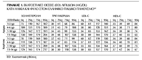 παιδικής ηλικίας, η ολική χοληστερόλη, τα τριγλυκερίδια, η LDL-C και κυρίως