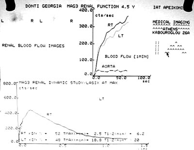καμπύλη του αριστερού νεφρού, ειδικά μετά την έγχυση φουροσεμίδης (εικόνα 2).