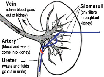 Ο καθετήρας αυτός έχει τριπλή χρησιμότητα: α) παροχετεύει τα ούρα του νεφρού,