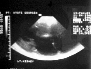 απεικονιστικός έλεγχος αποτελούμενος από υπερηχογράφημα, το οποίο έδειξε υδρονέφρωση