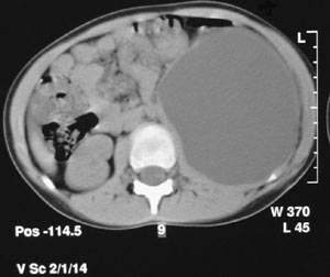 κοιλίας, όπου διακρίνεται καθαρά μεγάλη διάταση του πυελοκαλυκικού συστήματος