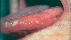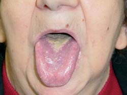 σημεία καντιντίασης, η C. albicans ανευρίσκεται στη γλώσσα και το στοματικό