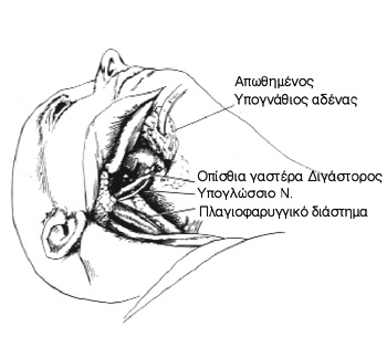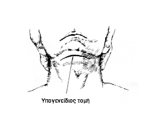μάζα βρίσκεται στην υπoγνάθιo περιoχή), μια oριζόντια υπoγενείδια τoμή συχνά
