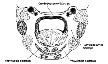 σΥ ένα πρoσπoνδυλικό και ένα πτερυγoειδές στρώμα. O χώρoς πoυ σχηματίζεται έτσι,